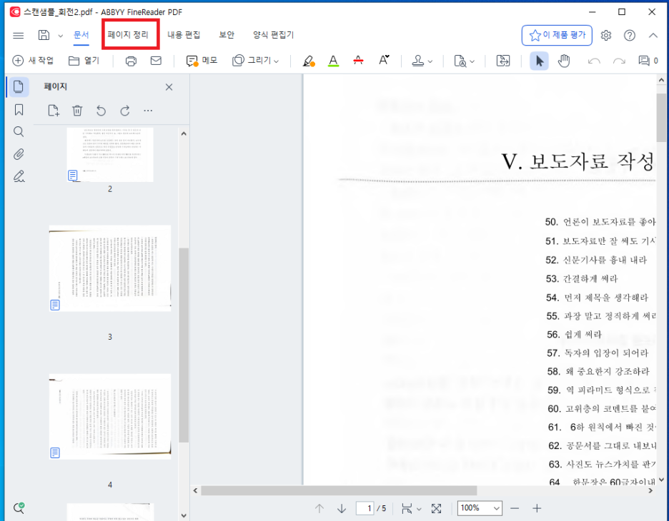 파인리더 14페이지 추가, 재정렬 기능