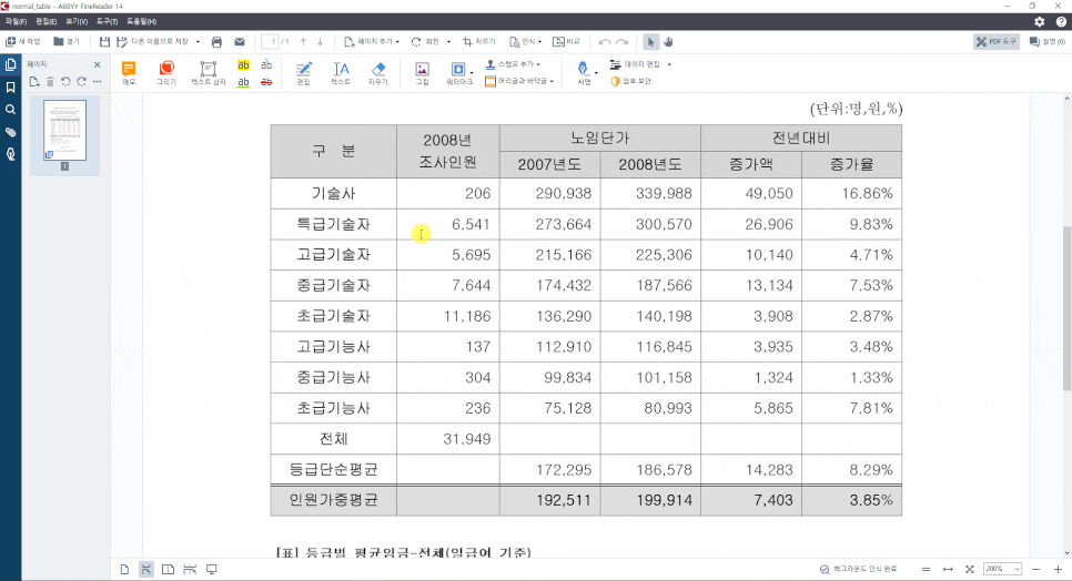 ABBYY 파인리더 14는 이미지를 워드, 엑셀로 변환합니다. OCR이란 (Optical Character Recognition) 광학 문자 인식의 약자로, 광학적인 음영을 통해 이미지에서 텍스트 형태의 패턴을 찾아내는 기술입니다. 아무런 정보가 없는 이미지에서 수만자가 넘는 한글, 한자의 패턴을 비교하고 찾아내는 것은 결코 쉬운 기술이 아닙니다. 한 글자라도 더 정확한 인식을 위해선 이미지 사전처리, 해상도 설정, 문서 구조 분석력(텍스트/그림/표 분석) 등의 밸런스가 중요합니다.