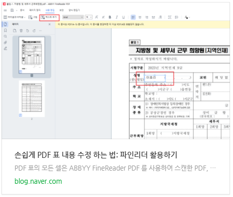 파인리더 14 PDF 양식 채우기 기능